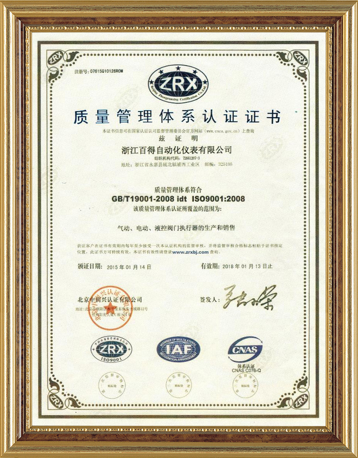 百得自動化QH電動執行器具備國家防爆資質,防爆等級EXdIIBT4,滿足了90%以上爆炸性氣體環境的隔爆要求,采用圓形止口配合隔爆面,隔爆性能更好、更可靠;防護等級為IP67,解決了傳統隔爆型產品防護等級低、性能差的頑疾;采用高強度玻璃鏡片燒結工藝,開度視窗更美觀、平滑;電氣限位行程位置,使電氣限位調節更簡單、更精準;直裝式ISO5211安裝與閥門的聯結更標準、更簡單;優質鋁合金外殼,整體型設計,外觀造型精巧、美觀。